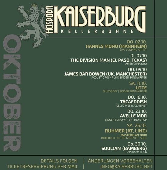 Jeden Donnerstag um 20:30 Uhr -Special-Live-Acts auch mal an anderen Tagen- bringen wir Musiker*innen aus den verschiedensten Genres zu dir ins Burgviertel auf unsere Kellerbühne.