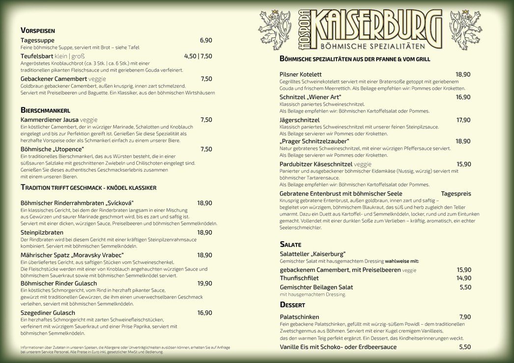 Bitte sendet uns das Vorbestellungsblatt ausgefüllt spätestens 1 Woche vor Ihrer Reservierung an info@kaiserburg.net zurück.